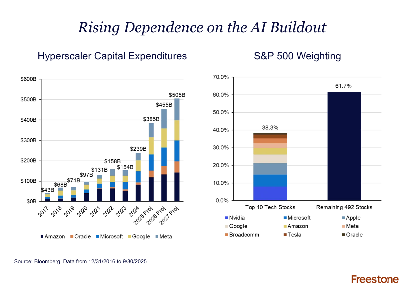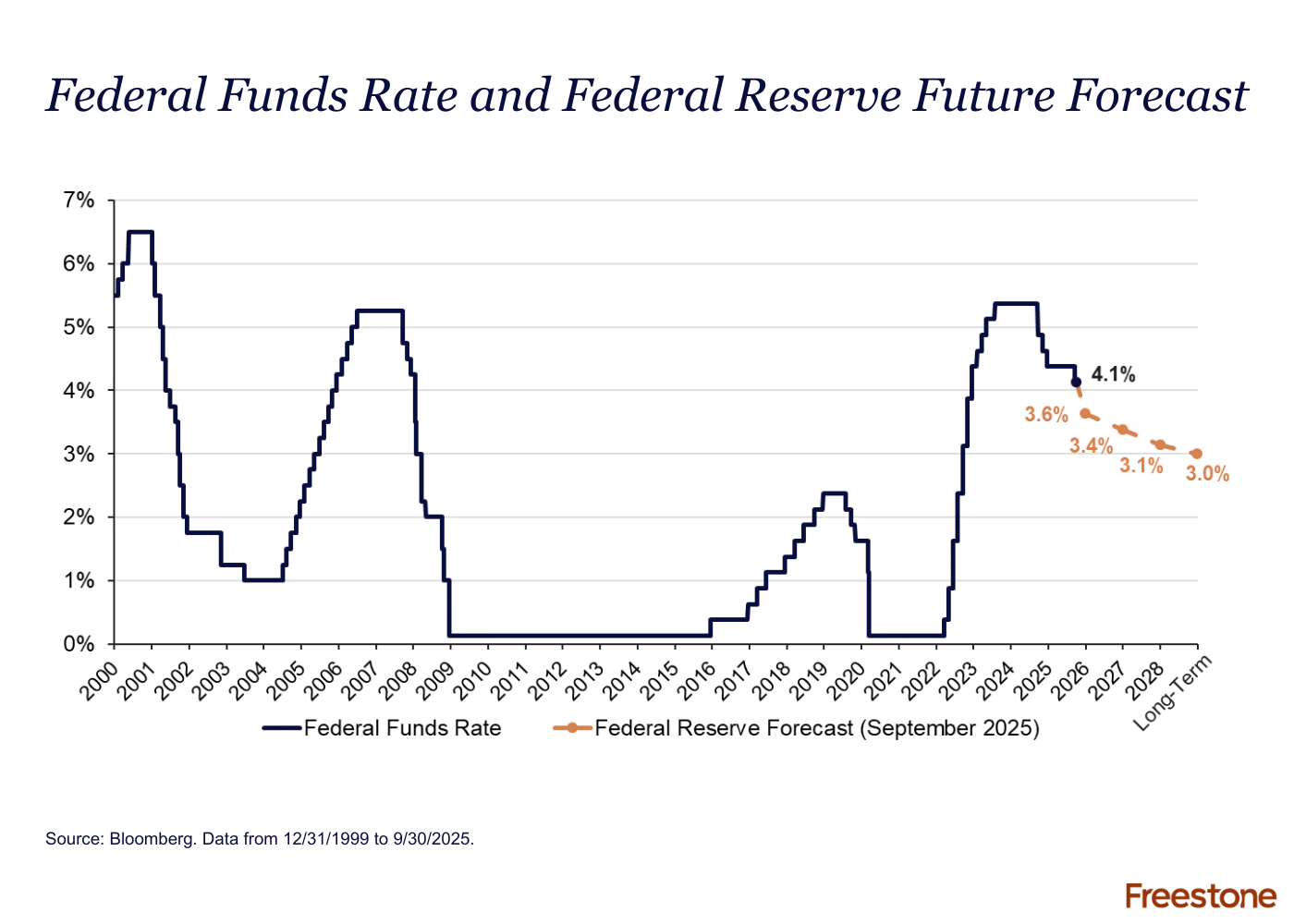 Falling rates are providing a welcome tailwind, corporate earnings remain healthy, and technological innovation is driving genuine economic progress. Yet history reminds us that exuberance can overrun fundamentals. While the AI revolution is real, valuations that price in perfection leave little margin for error. At Freestone, we’re preparing for volatility by emphasizing long-term fundamentals: durable earnings, prudent capital allocation, and diversified portfolios that can thrive across cycles. The AI gold rush may still be on, but lasting wealth is built by those who mine with patience and discipline.