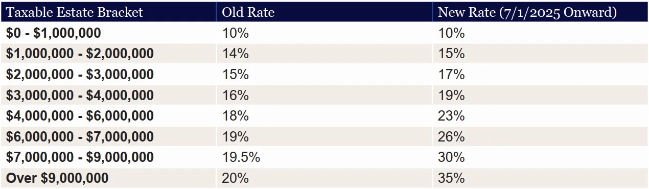 - The top estate tax rate increased from 20% to 35%.